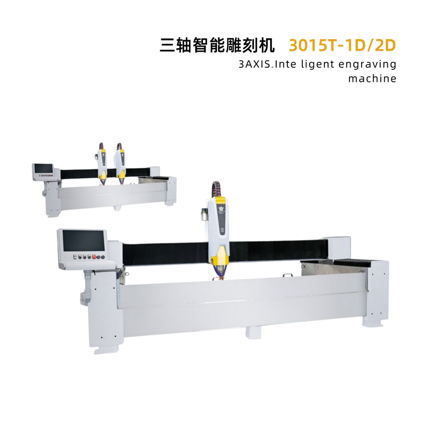 三轴石材雕刻机是石材数控加工领域的基础机型,以X、Y、Z三个直线轴为核心运动结构,凭借结构简单、操作便捷、性价比突出的优势,广泛应用于各类基础石材加工场景,其功能、应用与效率均围绕“基础加工、批量适配、高效稳定”的核心定位展开,以下是详细解析。 一、核心功能 三轴石材雕刻机的核心功能聚焦于平面及基础立体加工,依托X(左右)、Y(前后)、Z(上下)三个方向的直线运动,刀具始终垂直于加工平面,可实现多种基础石材加工工艺,兼顾精度与实用性,具体功能如下: • 基础切割与成型:可完成石材的直线切割、矩形切割、简单异形切割(非倾斜角度),适配大理石、花岗岩、青石、人造石等各类石材,以及陶瓷、玻璃等材料,能精准切割出标准化尺寸的板材,满足家装、工程等基础用料需求,切割边缘平整,崩边率控制在1.5%~2%左右。 • 文字与图案雕刻:支持阴刻、阳刻两种方式,可精准雕刻各类字体、简单花纹、logo等,无论是墓碑碑文、功德碑文字,还是家装装饰图案,都能保证字体工整、图案清晰,无毛刺、无偏差,定位精度可达±0.03~0.08mm,适配不同精度需求的加工场景。 • 浮雕与简单造型加工:可完成浅浮雕、平面浮雕及简单立体造型加工,能还原山水、花鸟、生肖等基础图案的立体感,无需二次打磨即可达到较好的成品效果,适配装饰摆件、背景墙等场景的基础造型需求,兼容Type3、Artcam、精雕等多种设计软件,可快速导入设计图纸实现雕刻。 • 辅助加工功能:配备自动调平功能,可纠正石材表面的凹凸不平及坡度,确保雕刻深度均匀一致;具备断电续刻、加工时间预测、模拟雕刻等智能化功能,避免因突发情况导致加工中断,减少材料浪费;三轴全防水防尘设计,能全方位保护机器传动部件,提升设备稳定性与使用寿命。 二、主要应用领域 三轴石材雕刻机因其操作简单、成本较低、适配基础加工需求的特点,主要应用于中小型加工场景,覆盖家装、园林、殡葬、工艺品等多个行业,精准匹配批量标准化加工与基础定制需求,具体应用如下: • 家装与建筑装饰领域:这是其最核心的应用领域,主要用于加工石材背景墙(电视墙、沙发墙)、玄关屏风、踢脚线、窗台石、门槛石等家装构件,可完成简单雕花、切割、磨边等工艺,适配现代家装、普通工装的基础装饰需求,能实现定制化图案雕刻,且批量加工时尺寸一致性强,安装时无缝隙。 • 殡葬与碑刻领域:广泛应用于墓碑、功德碑、纪念碑的加工,可高效完成碑文、对联、生肖图案、龙凤浮雕等加工工序,相比传统手工雕刻,能大幅提升加工效率与精度,解决手工雕刻误差大、人工成本高的痛点,适配农村公墓、陵园等批量墓碑定制场景,一人一机单日可加工5-8套墓碑,远超传统手工效率。 • 园林景观领域:用于加工园林小品、景观构件,如石凳、石桌、花盆、简单景观浮雕、仿古建筑基础构件等,可批量加工标准化产品,也可根据园林设计需求完成简单定制,适配公园、小区、庭院等景观工程,兼顾实用性与装饰性,无需复杂异形加工能力即可满足基础景观需求。 • 工艺品与小型装饰领域:用于加工小型石材工艺品,如石材摆件、挂件、装饰牌等,可完成简单的浮雕、刻字、造型加工,适配小型工艺品加工厂、文创店的需求,能快速响应小批量、多样化的定制需求,操作门槛低,零基础人员经过1-2天培训即可上手操作。 • 其他基础加工领域:还可用于石材粗加工、简单板材打孔、直边磨边等,适配初创加工企业、小型门店的基础加工需求,可作为高端石材加工的前置粗加工设备,减少后续加工工序,提升整体生产效率,同时设备采购成本低、维护难度小,适合预算有限的场景。 三、加工效率 三轴石材雕刻机的效率核心优势的是“批量高效、稳定可控”,受设备配置、石材硬度、加工工艺的影响,效率表现存在一定差异,但整体优于传统手工雕刻,且适配批量标准化加工,具体效率特点及参数如下: • 效率核心优势:结构简单、机身刚性强,无多余旋转轴的运动消耗,加工过程稳定,无明显抖动,可实现24小时连续加工,大幅提升产出量;自动化程度高,导入设计图纸后可实现无人值守加工,减少人工干预,降低人工成本,相比传统手工雕刻,效率可提升5-8倍,尤其适合批量加工场景,能快速应对订单高峰。 • 具体效率参数:不同配置的三轴石材雕刻机效率存在差异,步进版空程速度约15.9m/min,加工速度建议值为10m/min;标准版空程速度约26.4m/min,加工速度建议值为15m/min;伺服版空程速度可达79.8m/min,加工速度建议值为15m/min,且加工精度更高(±0.03~0.05mm),适合对精度和效率有一定要求的场景;对于简单文字雕刻,每分钟可完成数十个字符;对于标准尺寸的墓碑、背景墙,单日可完成多套加工,大幅缩短工期,最快一套背景墙可当天交付。 • 影响效率的因素:一是石材硬度,花岗岩等硬质石材加工效率略低,需分层次雕刻,而大理石、青石等软质石材可一次性雕刻至5mm,效率更高;二是加工工艺,简单切割、刻字效率最高,浮雕、复杂造型加工效率相对较低,但仍优于手工雕刻;三是设备配置,大功率主轴(5.5KW及以上)、精密导轨与丝杆的配置,可提升加工速度与稳定性,进一步提高效率;四是操作熟练度,操作人员熟悉设备操作与软件设置后,可减少调试时间,提升整体加工效率。 • 效率对比优势:与四轴、五轴石材雕刻机相比,三轴机型的加工自由度较低